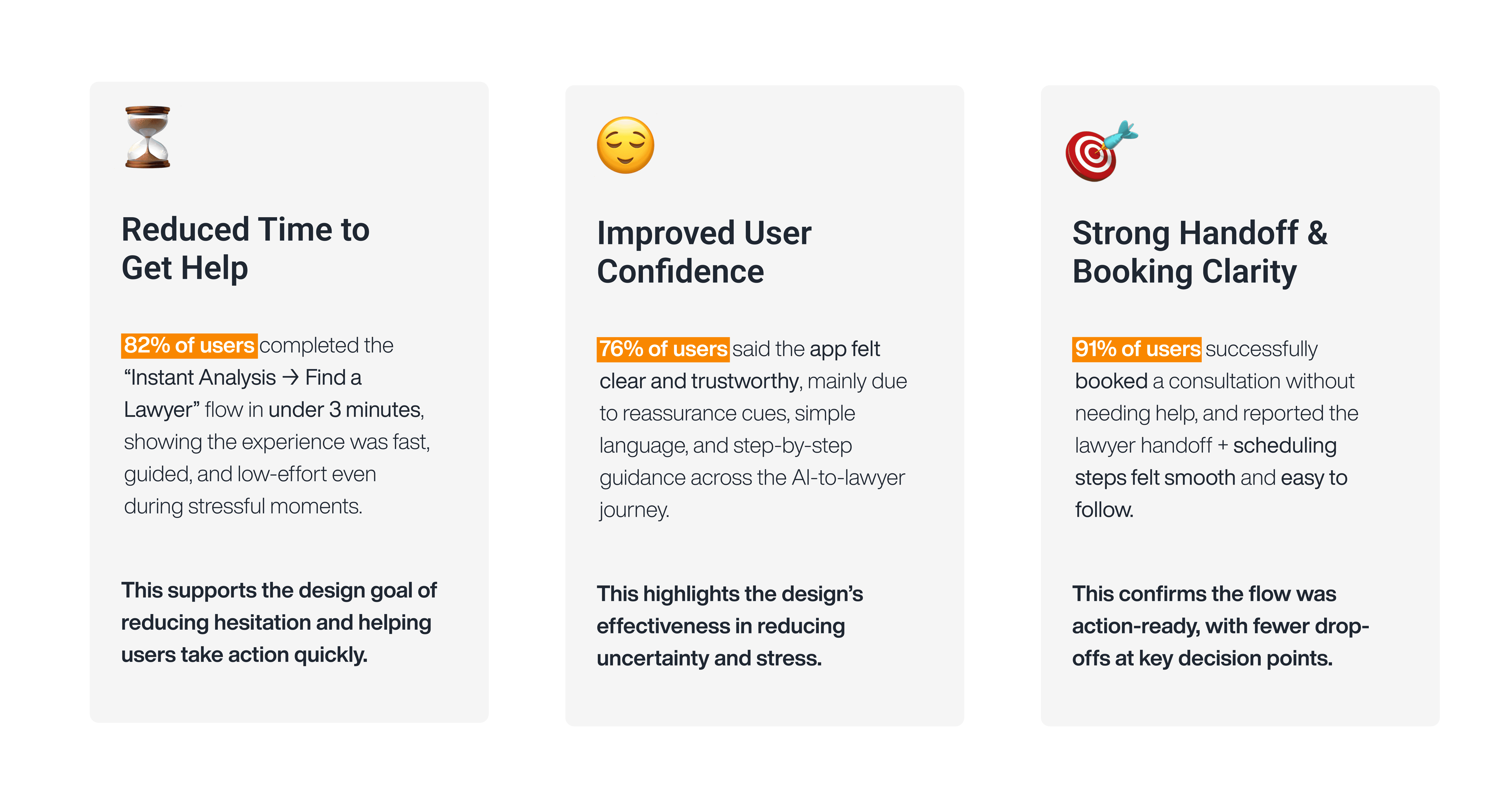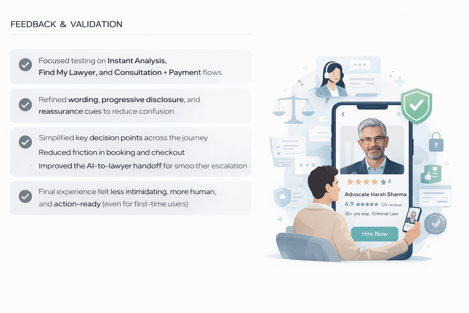 When someone needs legal help, they need it now. So every flow—from asking a chatbot to booking a lawyer—had to be intuitive, fast, and frictionless.