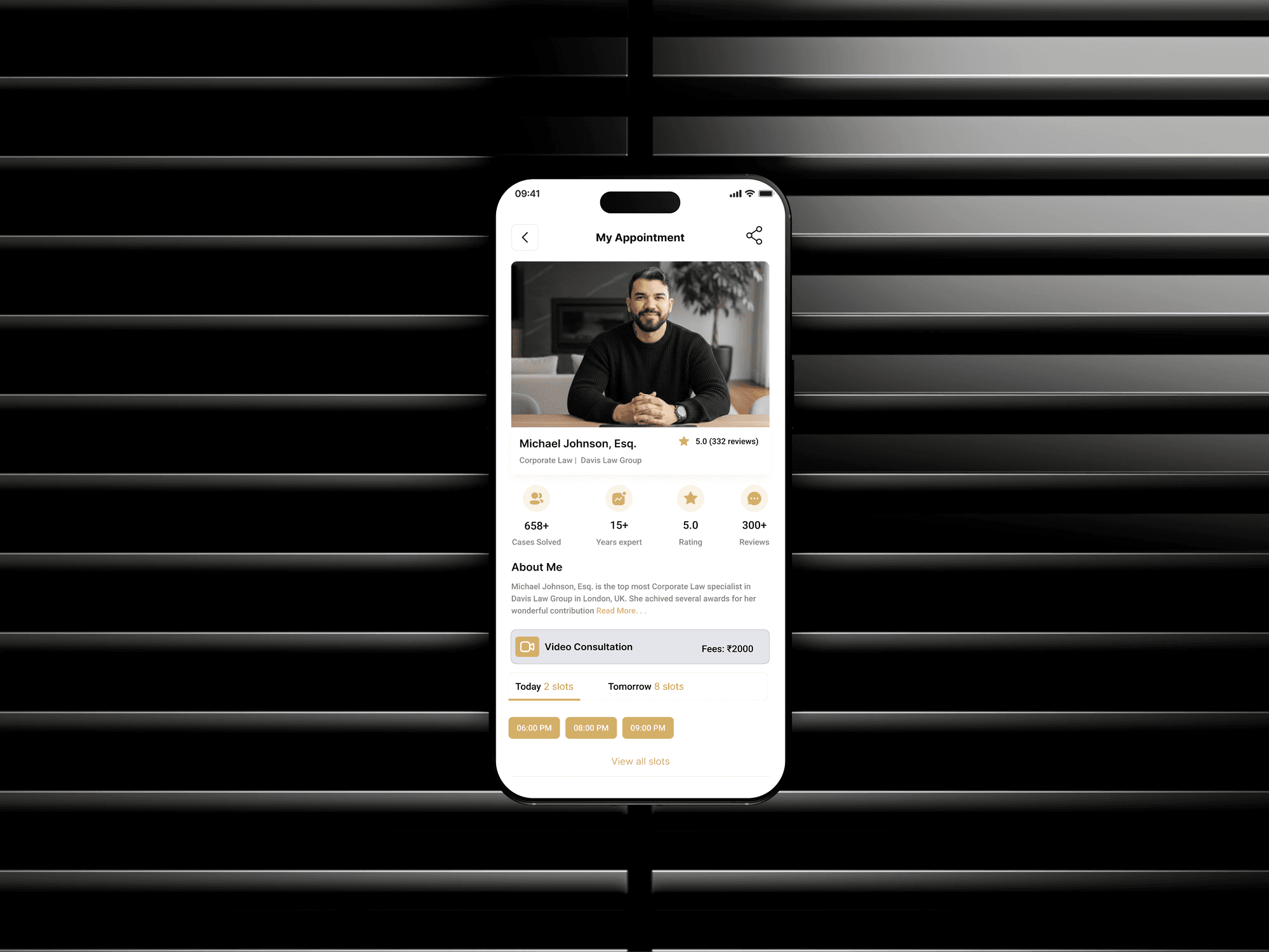 Finding and connecting with a trusted lawyer was time-consuming and unclear. Booking legal consultations often involved multiple steps and follow-ups.