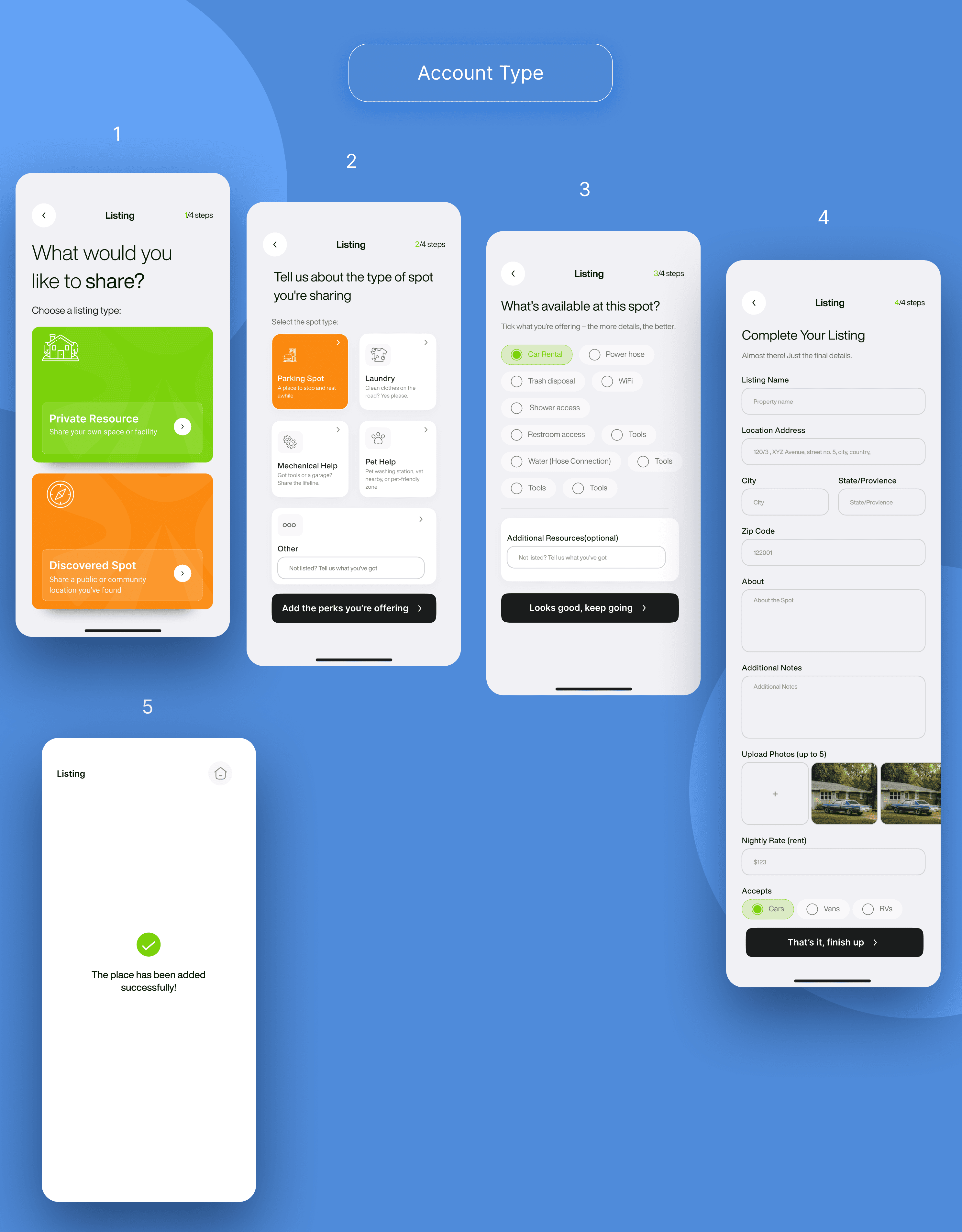 Designing a streamlined listing flow that reduced friction and guided users through four simple, conversational steps.